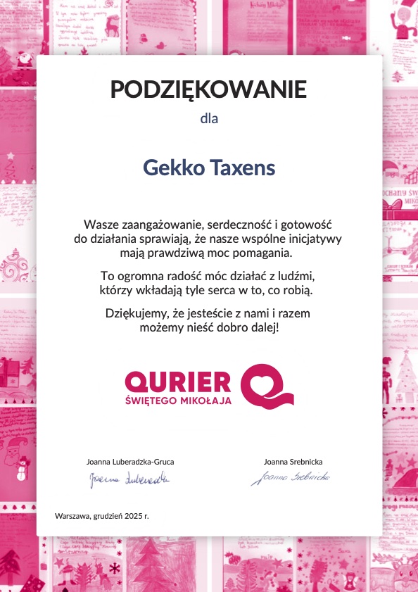 Zespół Gekko Taxens dołączył do pięknej inicjatywy Qurier Świętego Mikołaja, organizowanej przez Fundację Polki Mogą Wszystko. Dzięki tej akcji dziesięcioro dzieci z Klubu Młodego Strażaka w Cholewianej Górze mogło znaleźć pod choinką wymarzone prezenty.